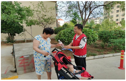 實踐活動最后,為助力文明城市建設(shè),服務(wù)隊員們走進社區(qū)開展了走訪慰問、垃圾清理、向路過老人發(fā)放飲用水等。隊員們一邊和老人們交流談心,一邊清掃地面。干凈的街角,老人誠摯的謝意,讓隊員們感受到了勞動的快樂。