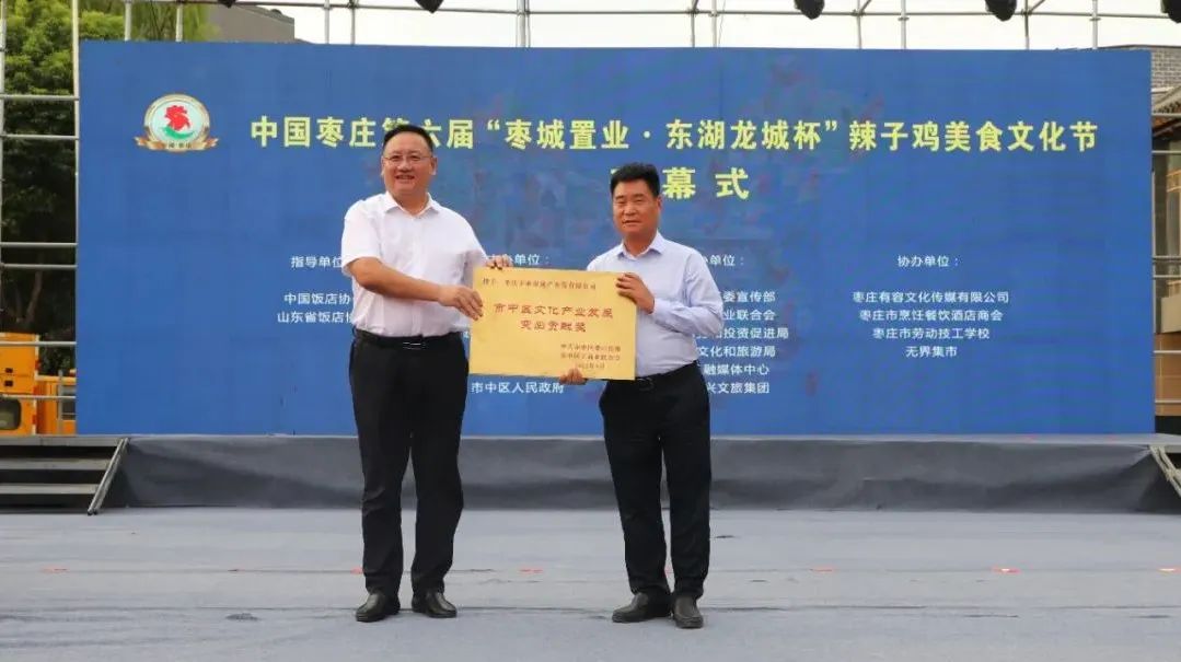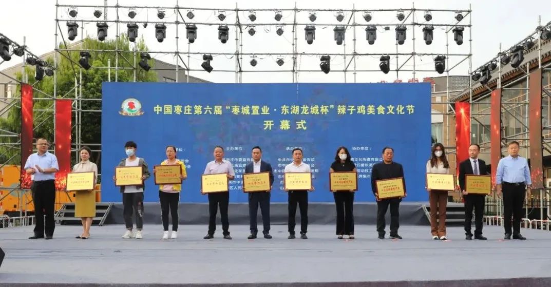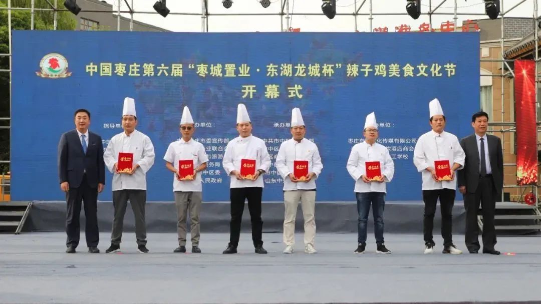 開幕式上,中國飯店協(xié)會副會長、中國飯店協(xié)會名廚委員會主席石萬榮發(fā)來了祝賀視頻。企業(yè)家代表山東棗城置業(yè)有限公司董事長殷允夷致賀詞。與會領(lǐng)導(dǎo)分別為“全雞宴”美食賽獲獎團(tuán)隊、首屆“慢品市中”美食評選獲獎單位、市中區(qū)文化產(chǎn)業(yè)發(fā)展突出貢獻(xiàn)獎獲獎單位頒獎,并共同啟動第六屆辣子雞美食文化節(jié)。
