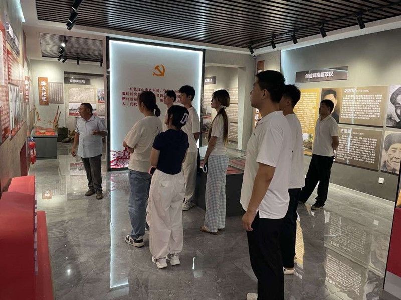 隨后,鎮(zhèn)文化書院“烽火紅印”志愿者丁繼海同志帶領(lǐng)新入學(xué)大學(xué)生們前往黃丘山套紅色記憶館開展紅色教育。通過參觀珍貴史料、聆聽革命故事,學(xué)子們深刻感悟革命先輩的奮斗精神,進(jìn)一步堅(jiān)定了傳承紅色基因、勇?lián)鷷r(shí)代使命的理想信念。