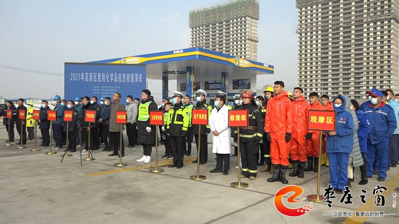 11月30日上午,棗莊高新區(qū)在張范街道北油石化加油站舉行2021年危險化學(xué)品應(yīng)急救援演練。